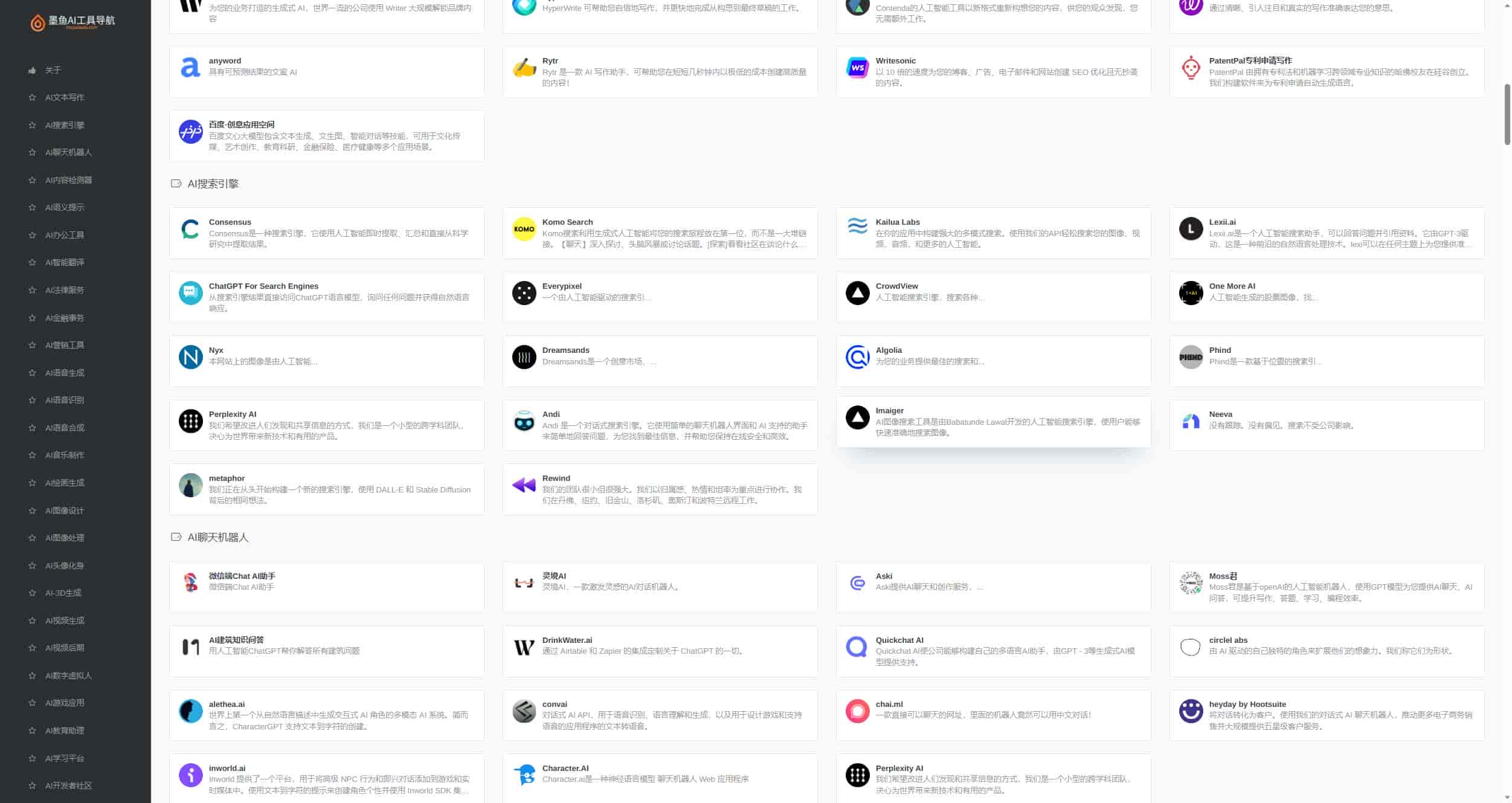 源码描述本系统是墨鱼AI导航,顺着AI的风口应运而生,小白也能即拿即用。系统拥有前后台,以及PC端和手机端,涵盖国内外500+AI工具集合精选网站,助你搭上人工智能浪潮,自动化高效完成任务,借助AI资源站点引流盈利。墨鱼AI导航系统,内置了500+国内外各类优质AI站点及工具,AI站点分类覆盖AI写作工具、AI图像工具、AI视频工具、AI音频工具、AI编程工具、AI音乐工具、AI设计工具、AI对话工具等AI工具全类,以及AI学习开发的常用网站、框架和模型,等等。