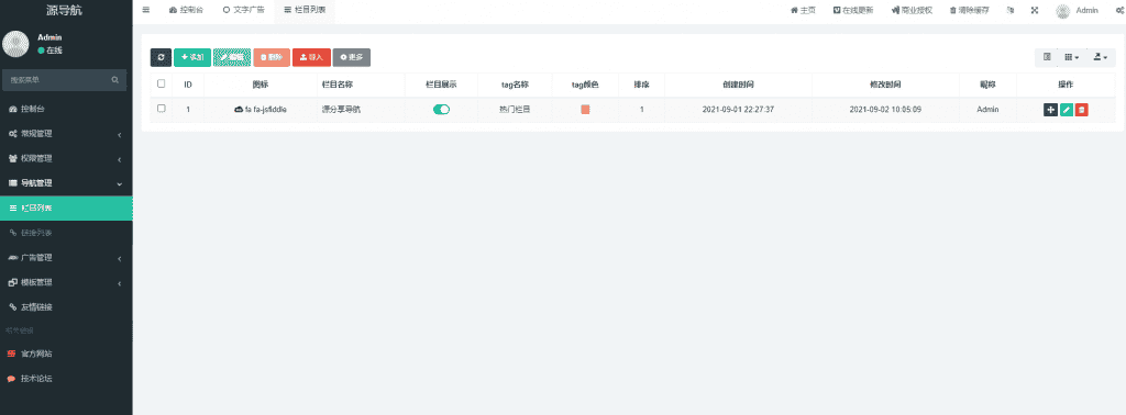后台配置导航栏目和收录站点