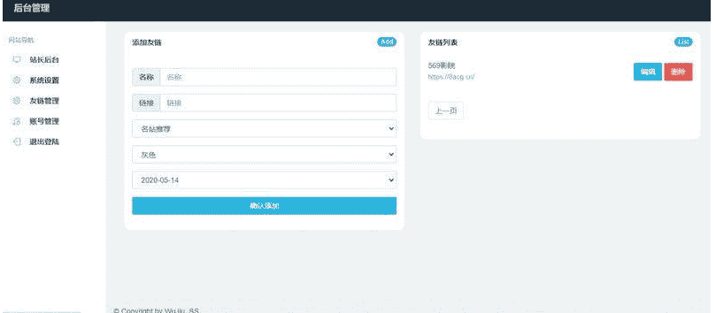 1.最少存在一个链接,如果无链接存在,在后台将无法添加链接