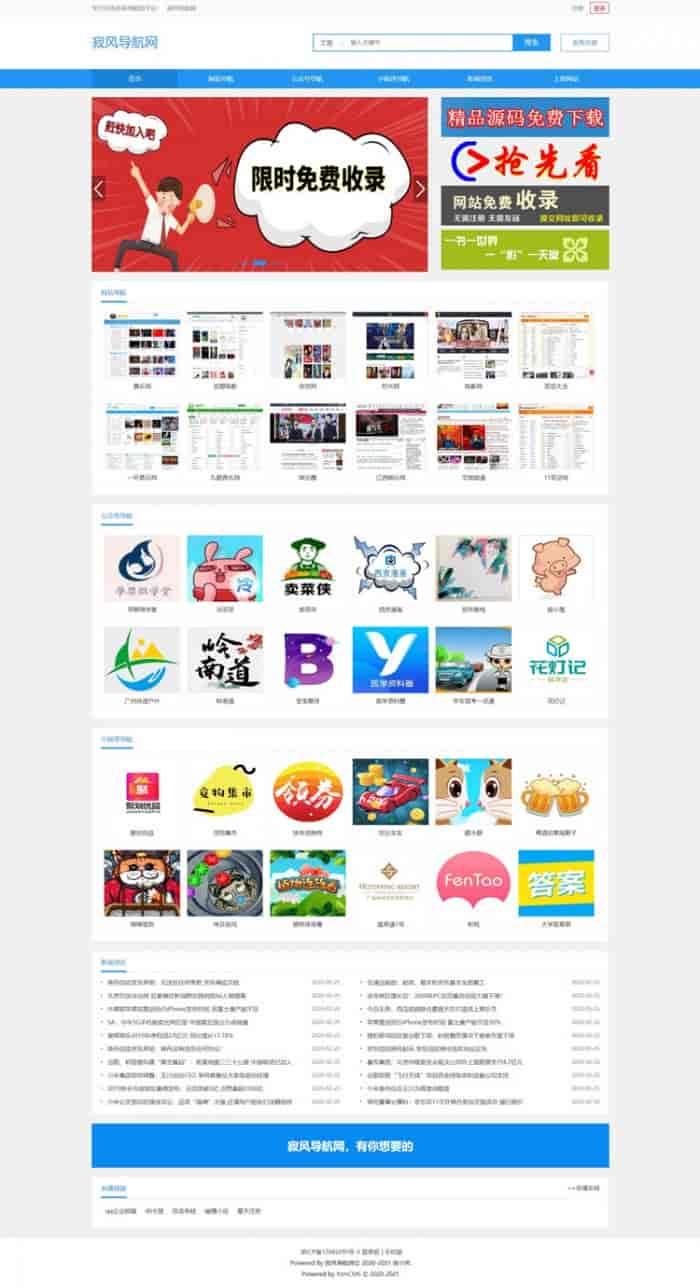 yzmcms内核蓝色网址导航微信公众号导航网站源码用yzmcms开发的模板,直接服务器打包出来的,上传安装就可以用,教程安装包内,可用作网址导航、微信小程序导航、APP导航等,含手机版。内置一条采集规则。