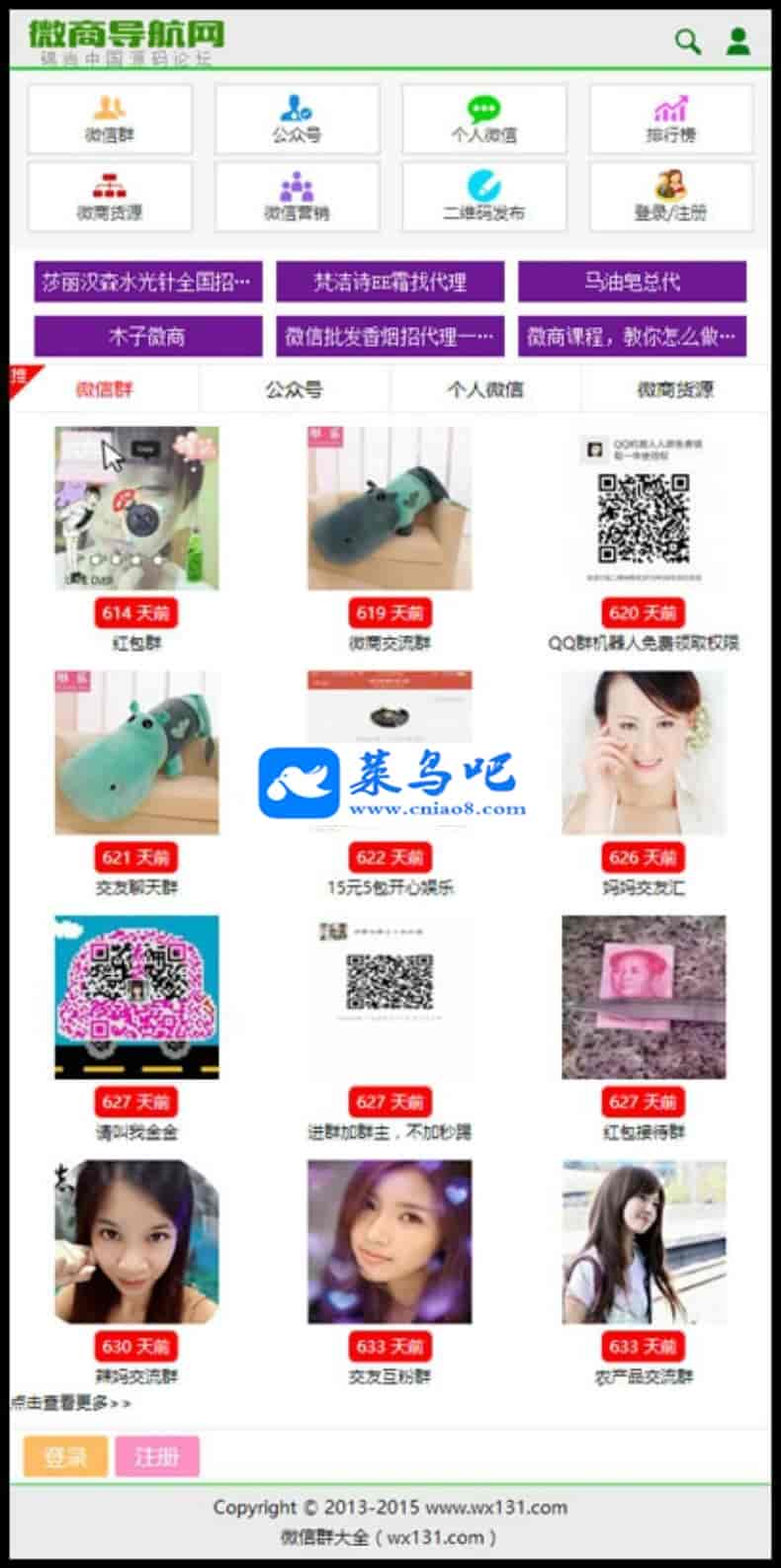 [分类信息] ThinkPHP微信代理微商货源网站源码 微信群公众号二维码导航源码