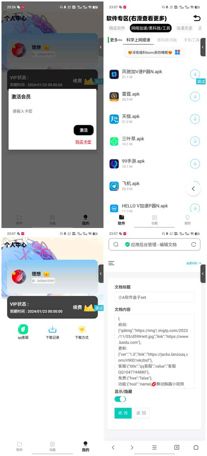 该软件库包含会员系统、用户系统和卡密系统等功能。