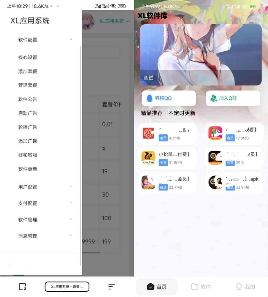 XL软件库App源码+后端源码,多功能软件库,支持自定义对接易支付