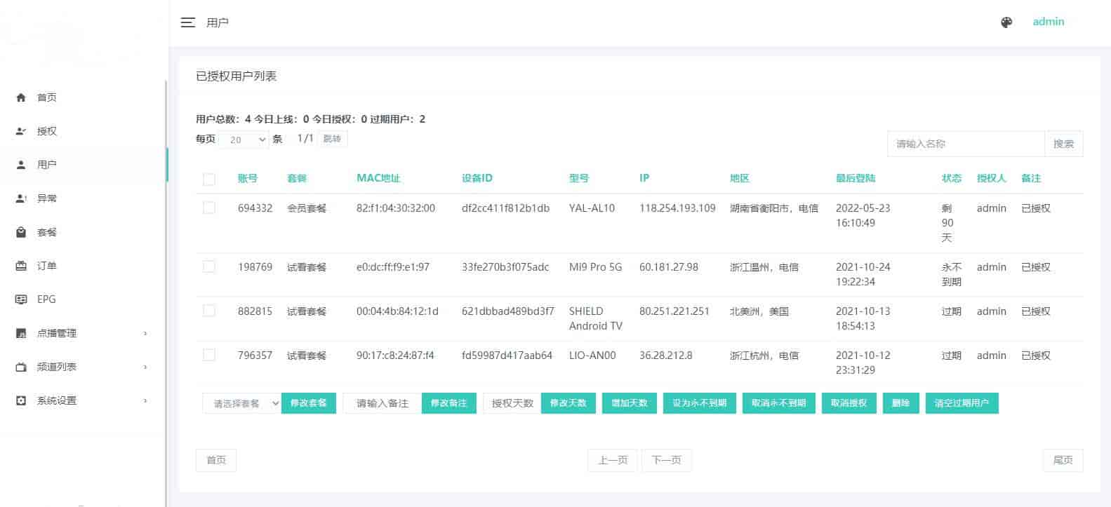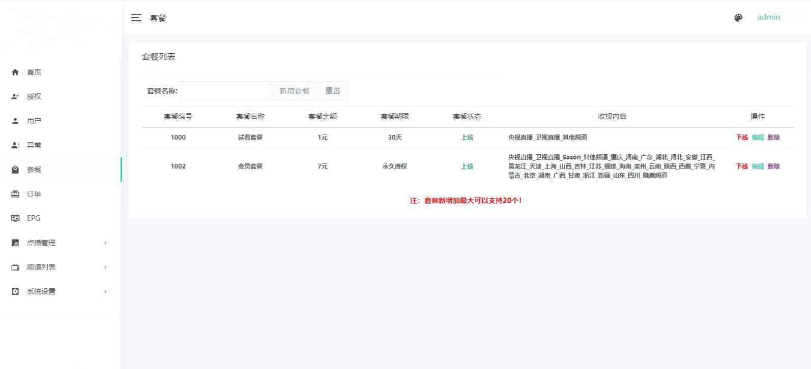 全开源电视盒子TV源码,管理系统源码已经二次开发,并且已经与 EZtv 电视直播管理系统对接。这个源码包含 IPTV 后端源码和未加密的 APK 用于反编译,可以运行。