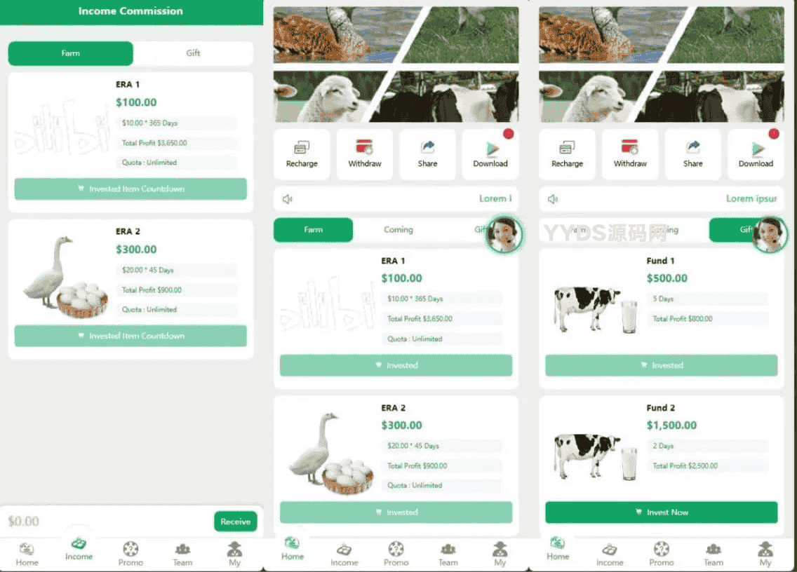[支付理财] 英文海外鸡鸭养殖挖矿奶牛基金矿机投资理财源码