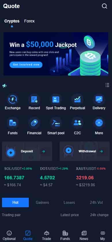 自带客服系统,虽然是老的,但是可玩性还是很高的,也支持c2c,理财,质押,交割,永续,没期货