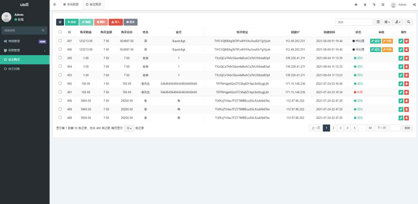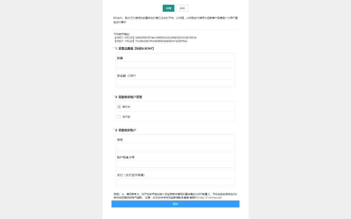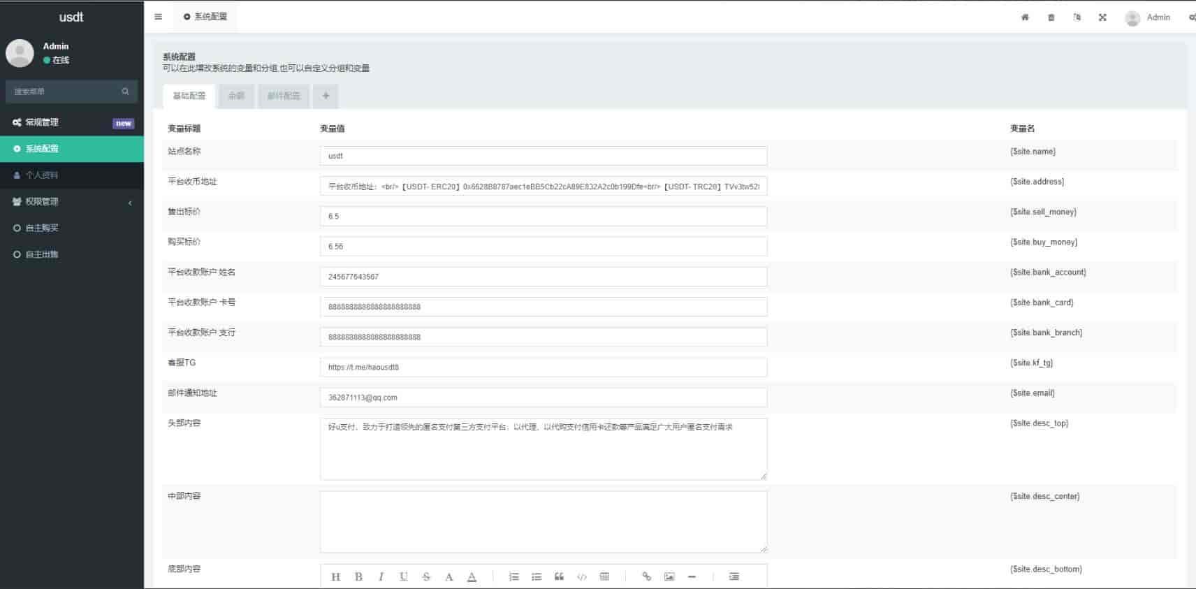 基于后台配置数量的USDT出售购买价格不同,提交前端输入的内容后,系统会自动发送邮箱通知网站管理员处理订单