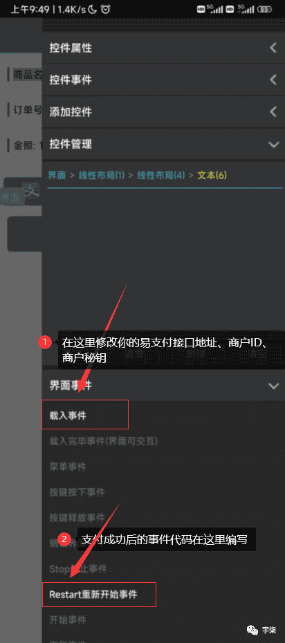 4、支付成功的的事件在【pay.iyu】界面的Restart重新开始事件