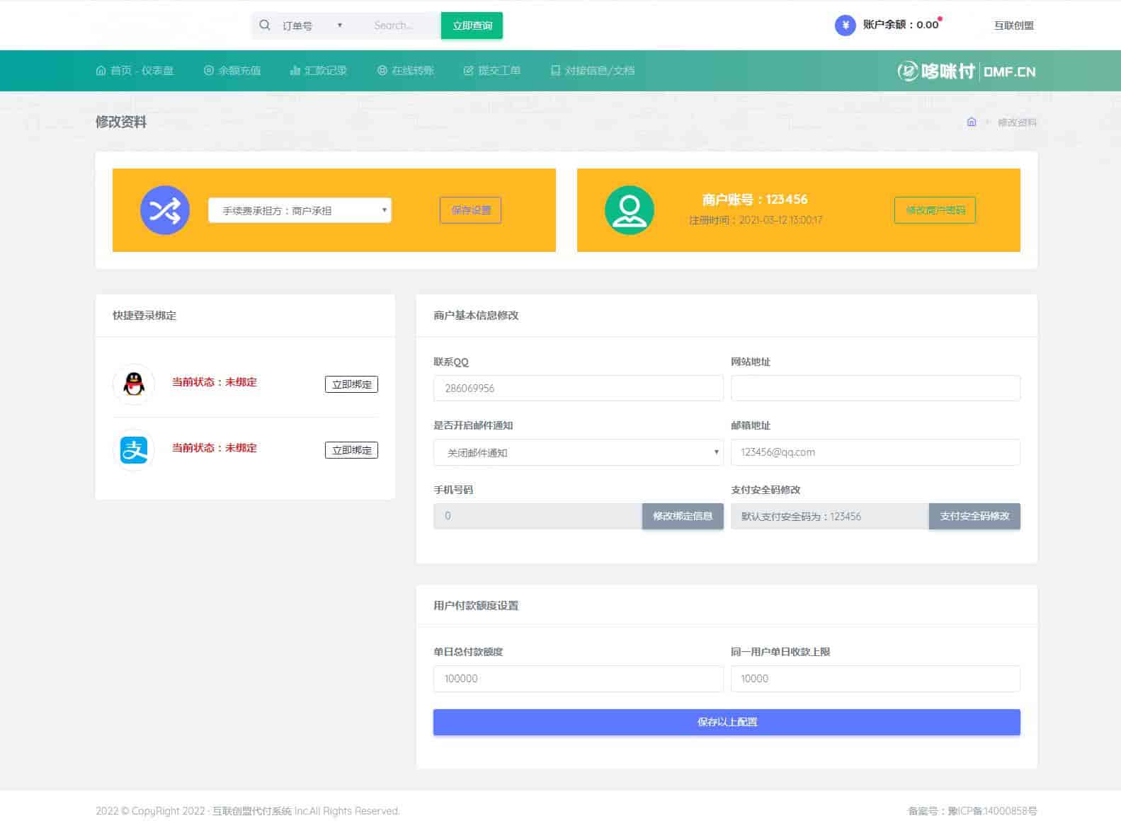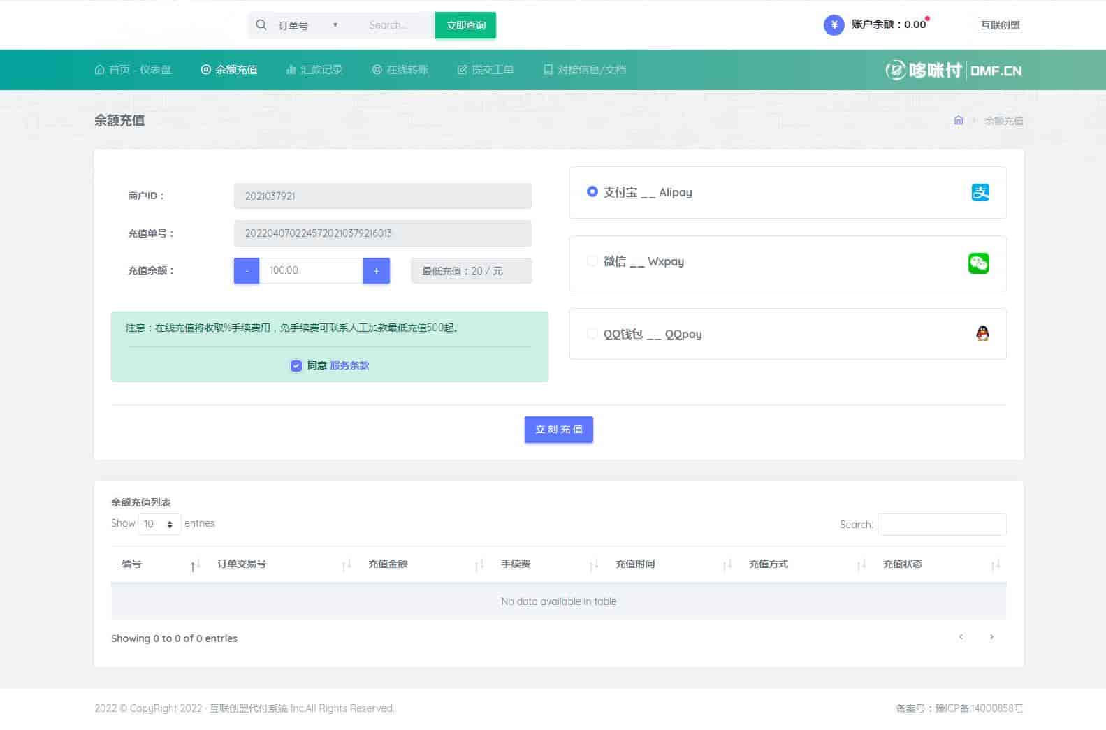 余额充值接口集成易支付、微付、码支付、官方通道。