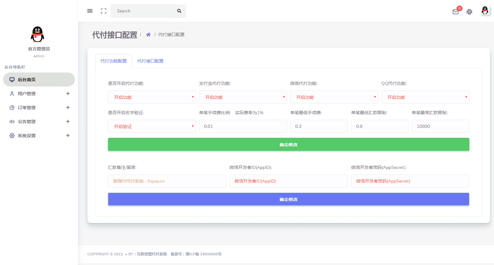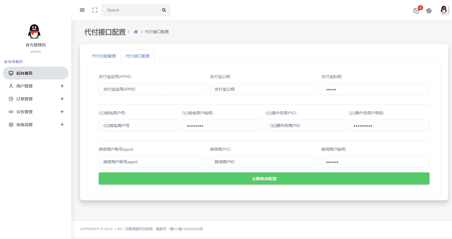 这套代付系统让人容易上手,支持微信、支付宝、QQ三家主流API代付,也可自定义对接其他平台,再也不用担心API接口被和谐了。源码测试后表现良好,不错的代付系统,有需要的可以尝试使用。