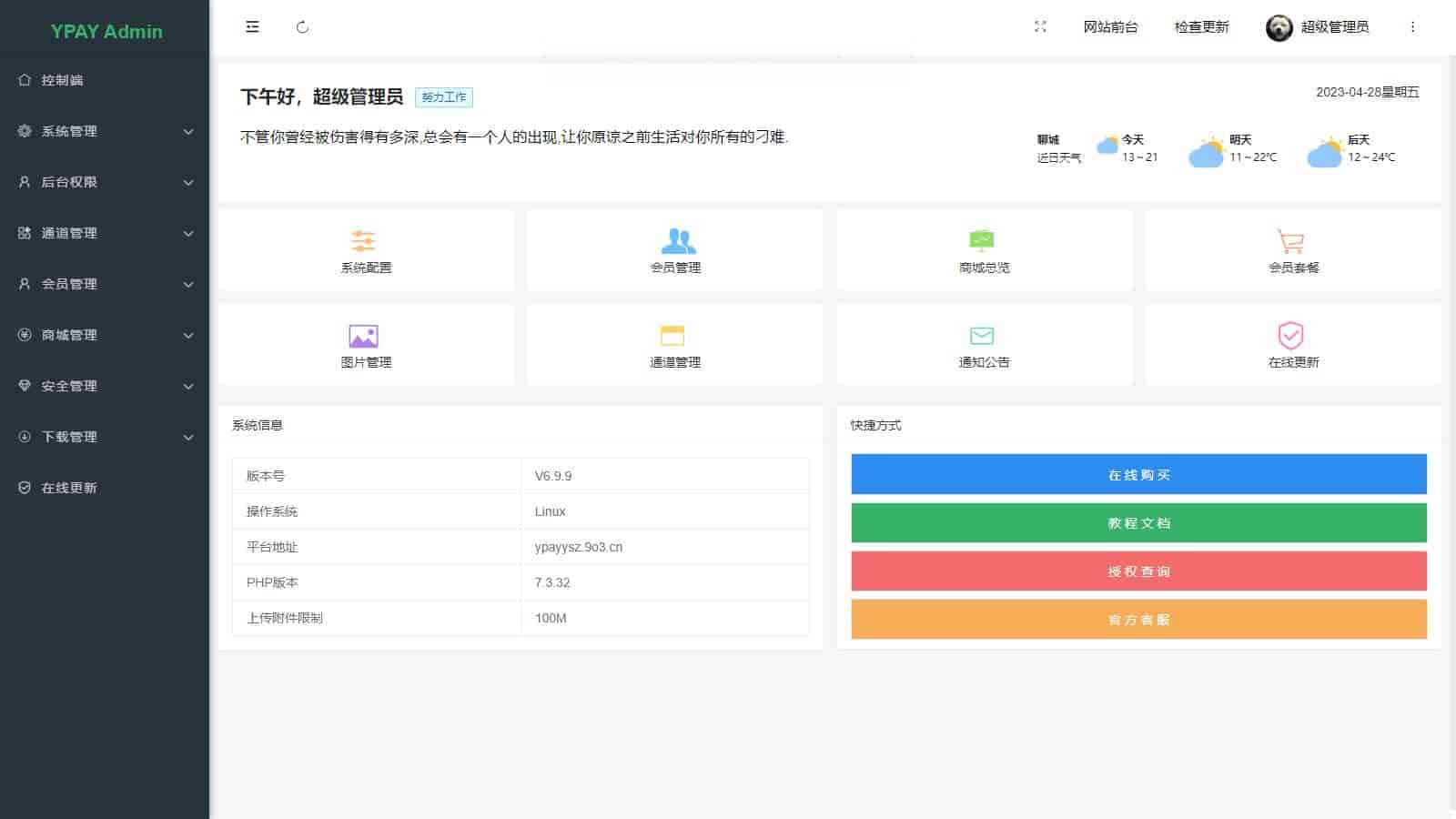 YPay是一款专为个人站长设计的聚合免签系统,其卓越的性能和丰富的功能值得您的关注。该系统采用全新轻量化的界面UI,让使用者可以更加快捷方便地解决知识付费和运营赞助的难题。同时,YPay基于高性能的ThinkPHP 6.1.2 + Layui + PearAdmin架构,提供了实时监控和管理的功能,让您随时随地掌握系统运营情况。
