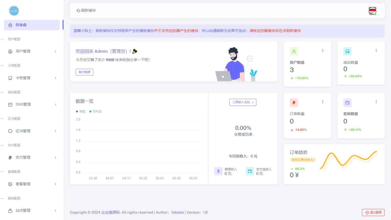 ✅ 多租户支持:后台可管理多个主域名资源池,独立流量统计