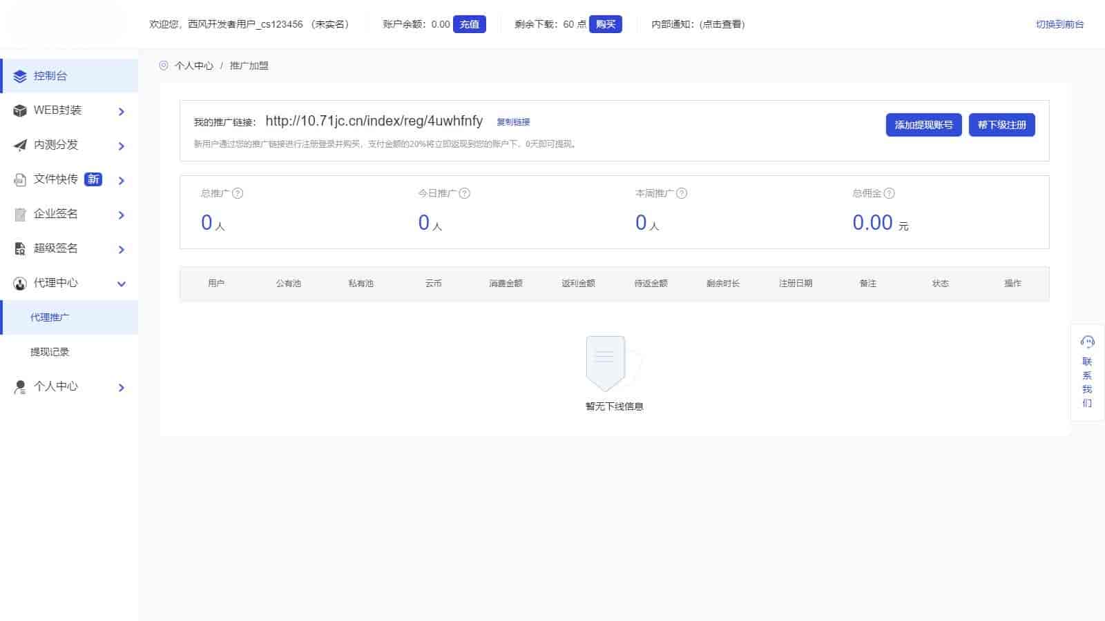5.签名专属下载页面,用户可以生成下载码进行安装,使用签名脚本在服务器直接完成,