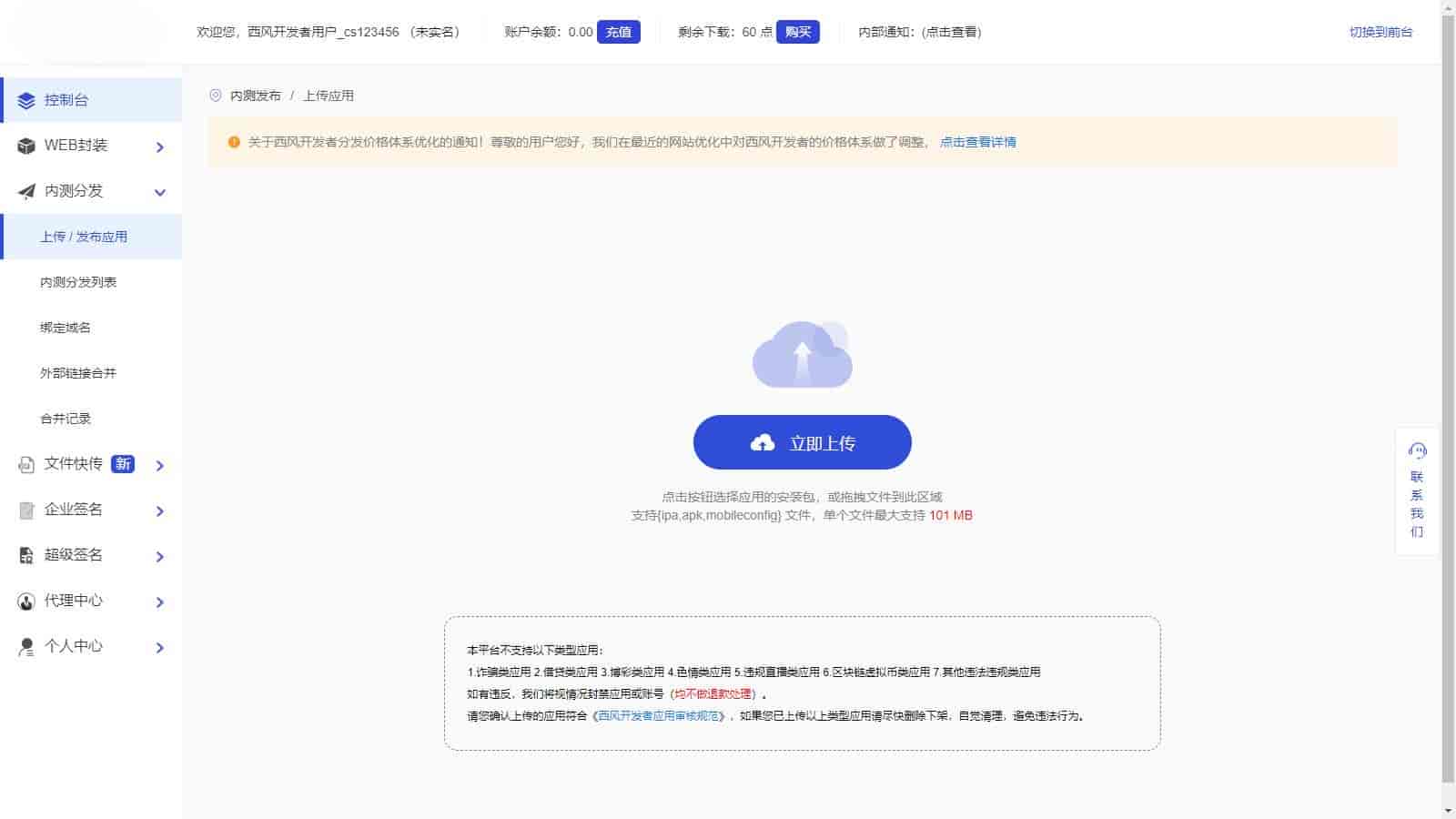 1.本程序支持安卓和苹果及EXE程序分发,上传后自动判断,通过技术手段已经让IOS和安卓用户稳定安装