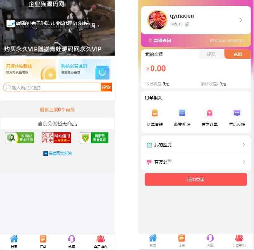 去除所有授权验证可在线更新,可自定义易支付接口在线更新前请备份程序以及数据库以防更新后需要授权