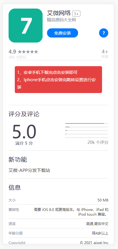 ·下载自动判断双端进行下载,如果是只有安卓端或者IOS免签端的直接改成对应链接即可,不支持分发ipa原生文件,如果是IOS是原生的ipa格式的话 下载链接改成对应的分发站点链接进行下载,