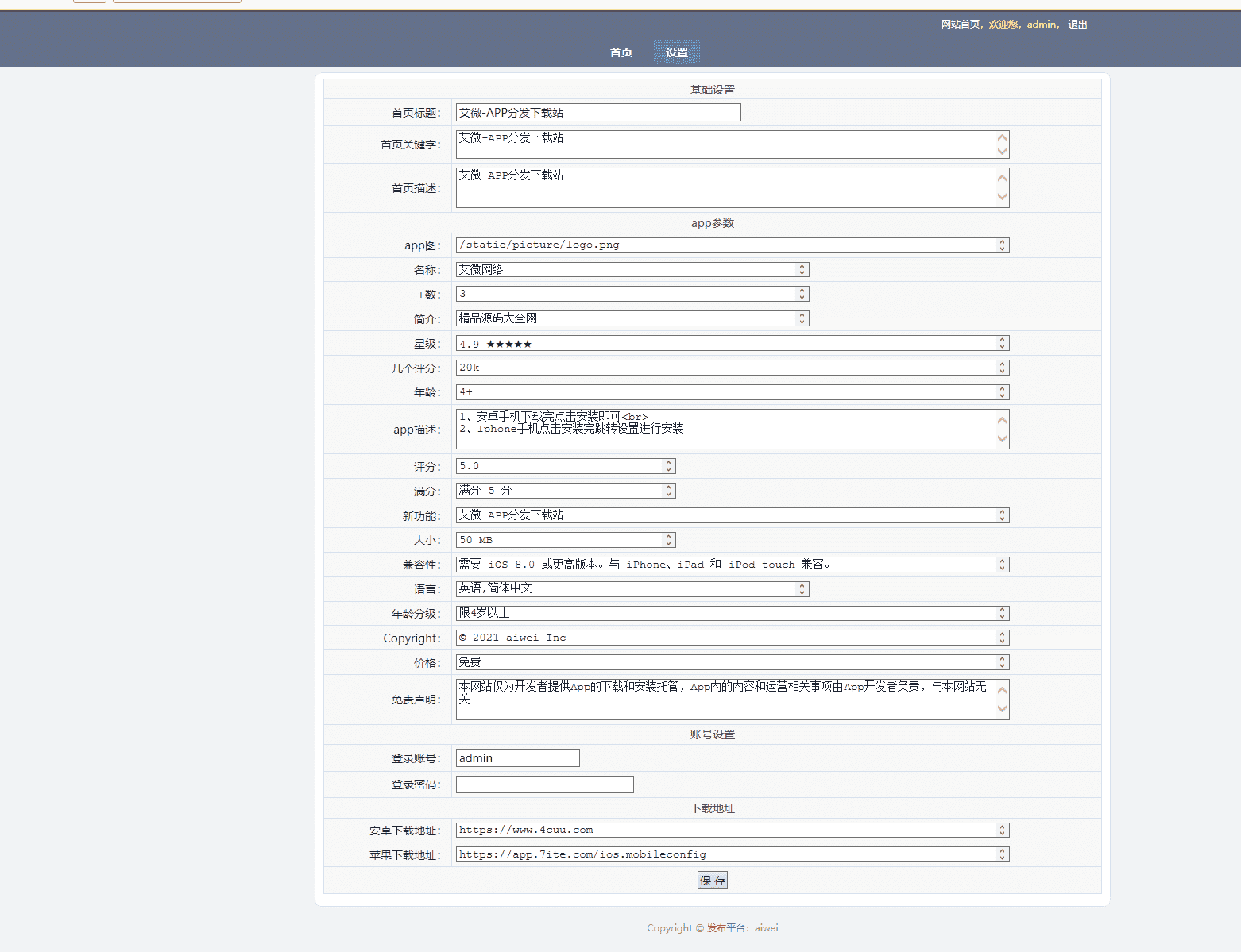 【新版带后台】APP应用下载页带后台 app分发下载页单页落地介绍IOS免签分发/自判断双端