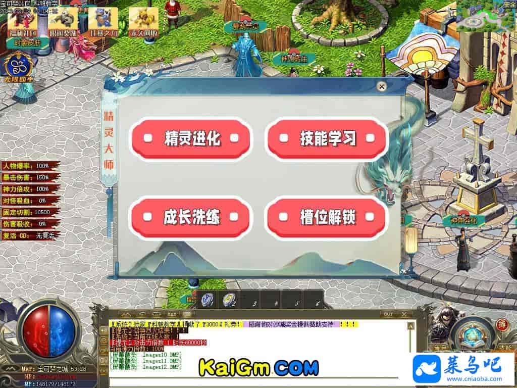 然后抓到宝宝去进化,击杀所有怪物均可能出现精灵大使,点击NPC进行捕捉精灵,背包内需要有精灵球,商城有卖,1W元宝