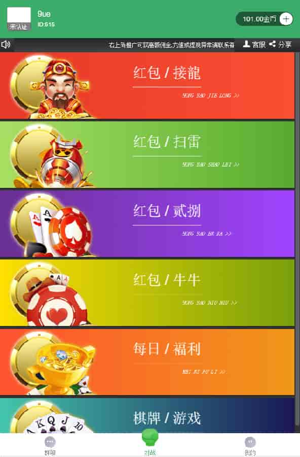 红包只直通车,NN二八杠扫雷红包接龙等等玩法多样,对接免公众号登录接口且支持网页打开,页面和UI均是一流,支持创建群聊,自带投诉入口,全修复完美可用版本。