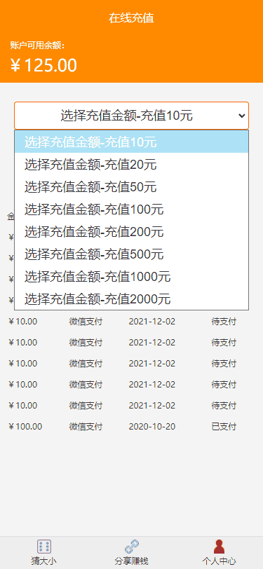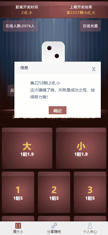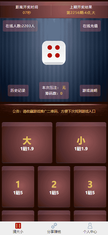 H5猜骰子比大小去除微信登录支持注册登录免签接口+手动提现版本