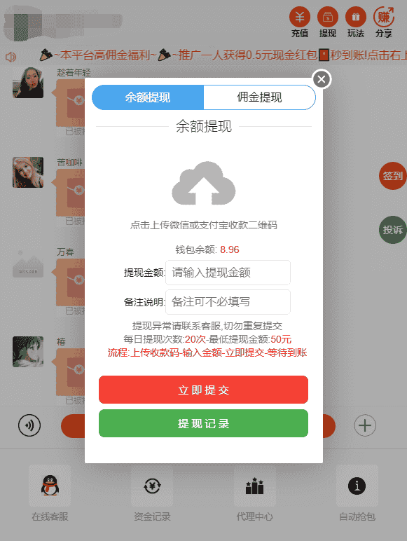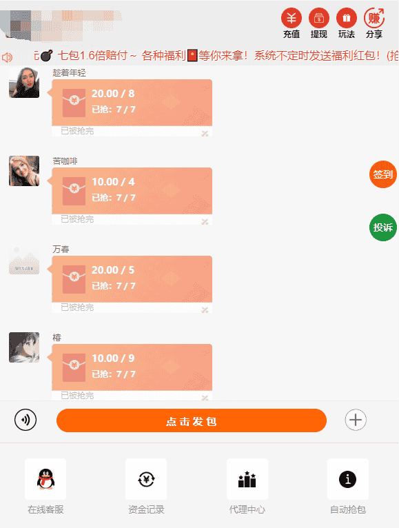 最新的H5红包扫雷源码,带签到功能和前台投诉功能,有防封效果且对接了微信免公众号接口,也有一定的防封效果而且省去备案域名,支付通道接入微信支付宝双免签通道。自动抢包、余额提现、佣金提现、分享等功能全部已完美修复。