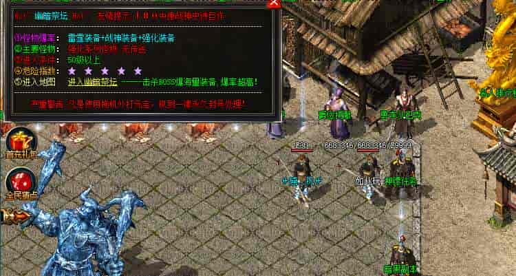1、暗黑副本进入需要支付5000元宝,每个玩家每天限制3次等级56!