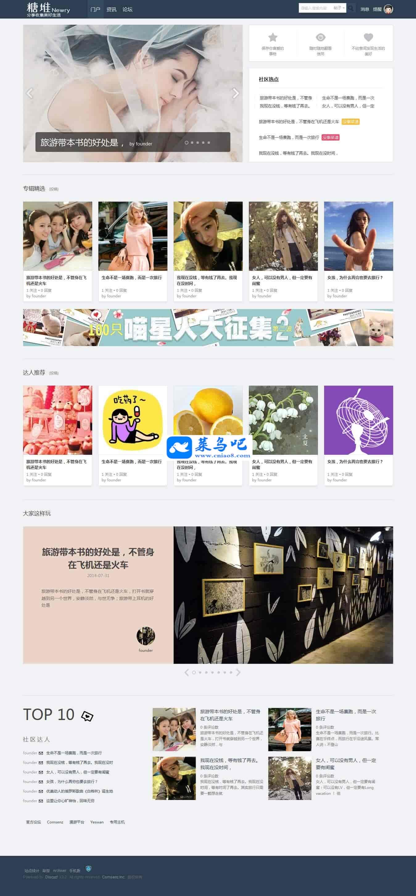模板名称 : 糖堆/宽屏分享社区适用版本 : Discuz! F1.0Discuz! X3.2 Discuz! X3.1Discuz! X3.0