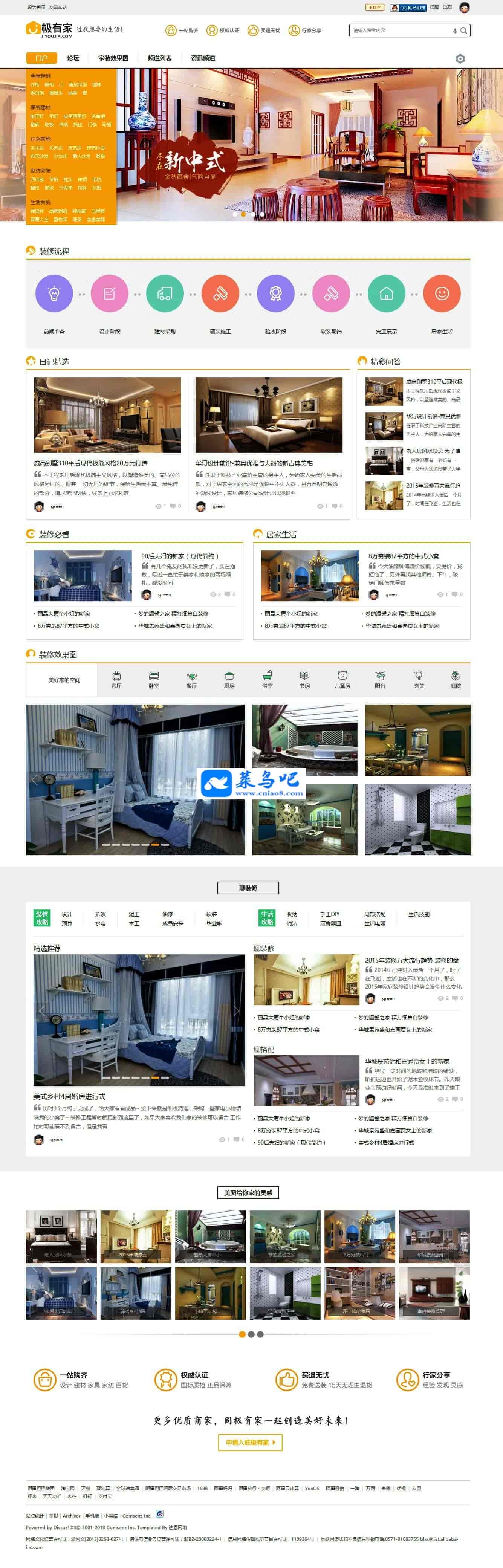 Discuz模板 Deco风格 商业版 装修家装主题模板 GBK+UTF 价值268元1.版本支持:discuzx3.0版本,discuzx3.1版本,discuzx3.2版本。包括网站首页,论坛首页,论坛列表页,论坛内容页,论坛瀑布流,资讯列表页(支持多个),产品列表页(支持多个),关于我们频道页。