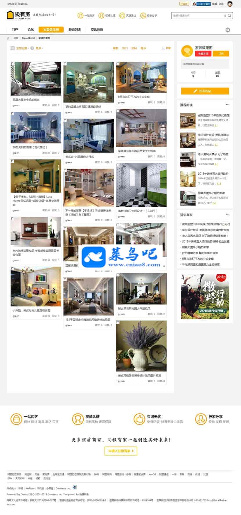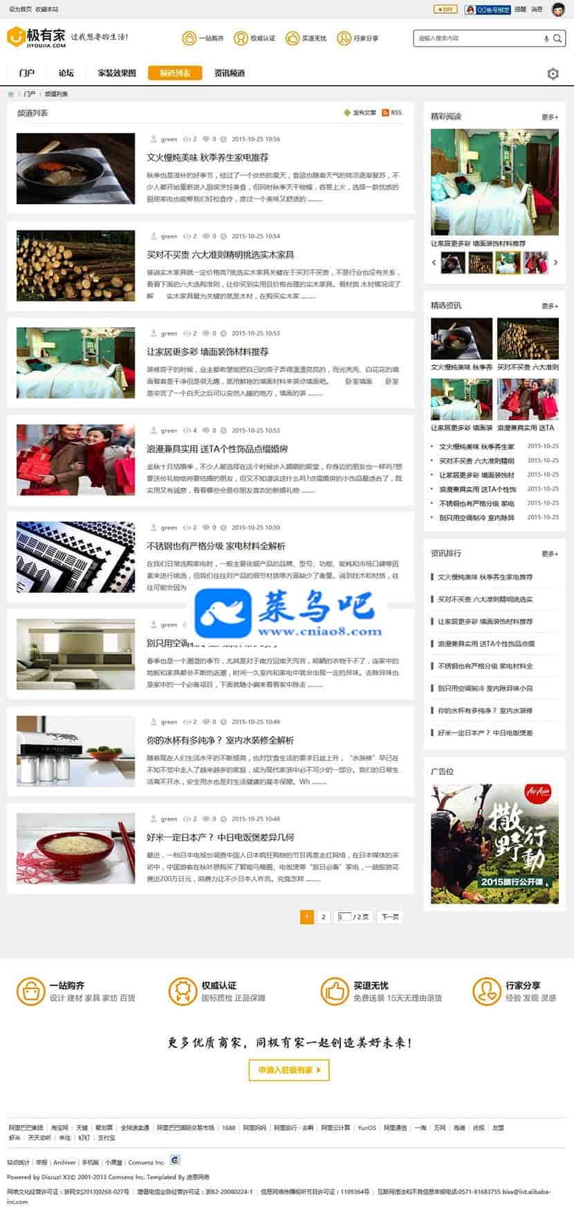 2.模板论坛首页,列表页,内容页,以及文章页面数据采用DIY数据读取,方便新手老手运营以及后期维护,时尚大气简洁。模板添加了不少处动画效果,增加用户体验和粘度。
