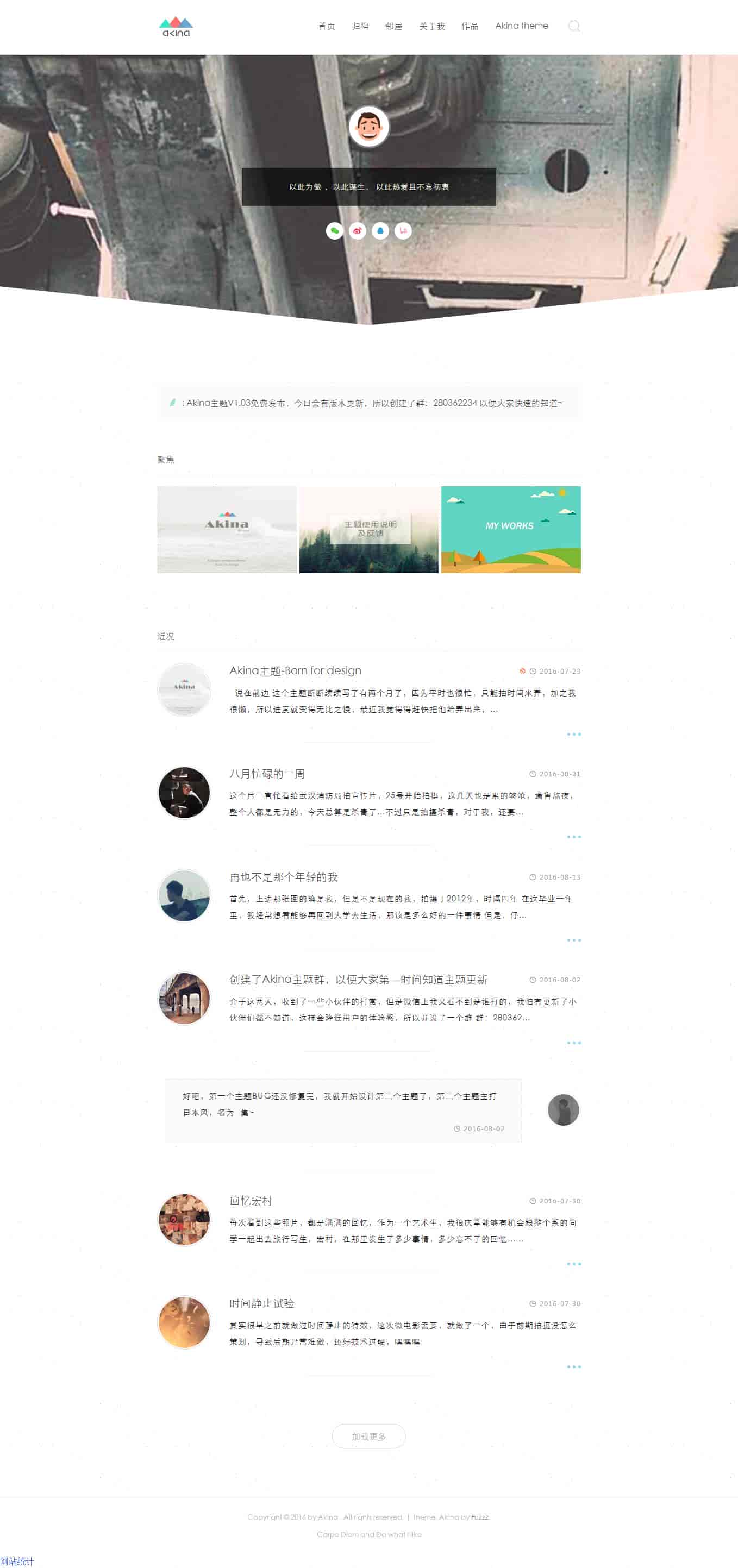 [wp模板] 【WordPress主题】UI简洁主题AKINA Theme