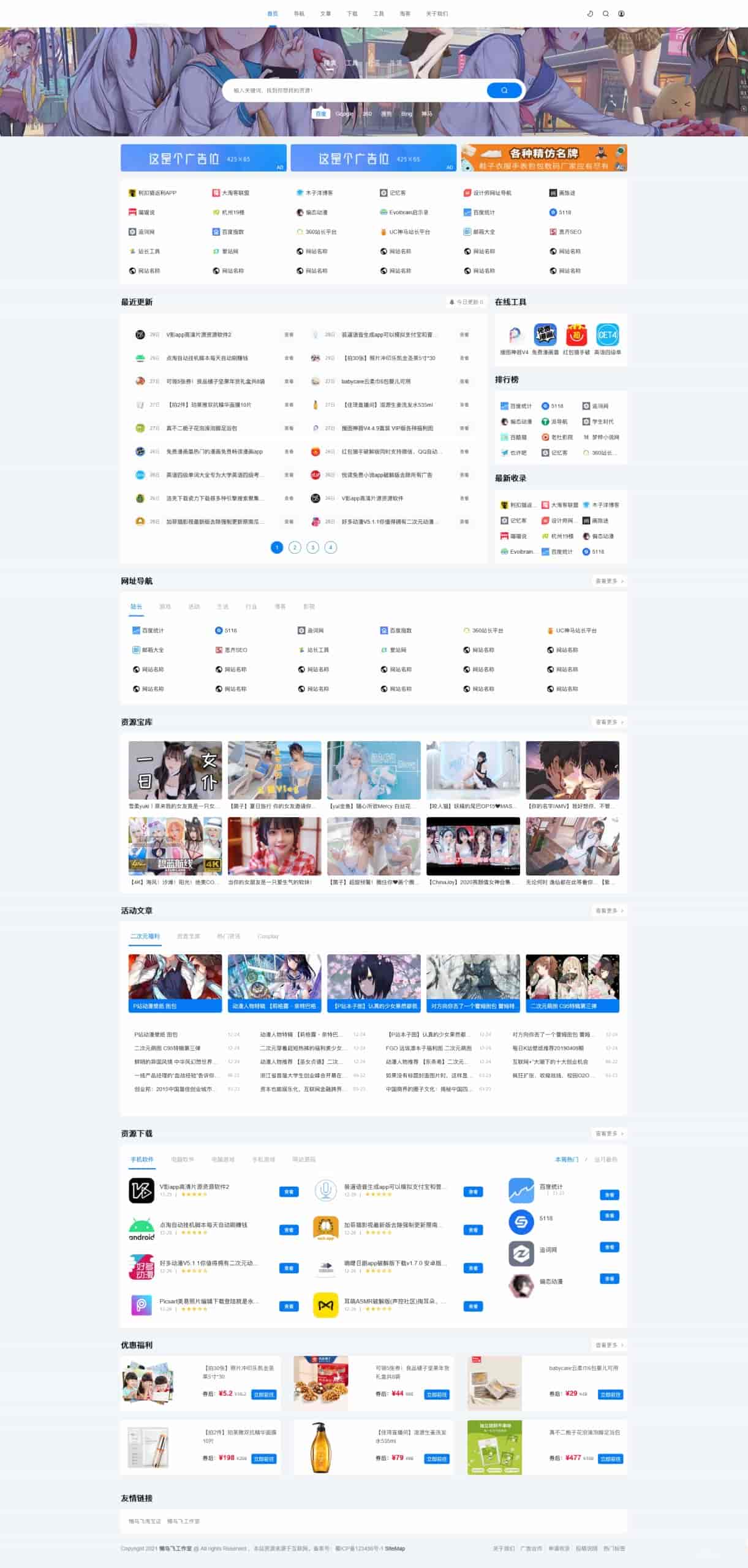 一、本模板使用帝国cms7.5 utf8版本,二次元导航新闻下载工具淘客自适应响应式帝国cms模板。