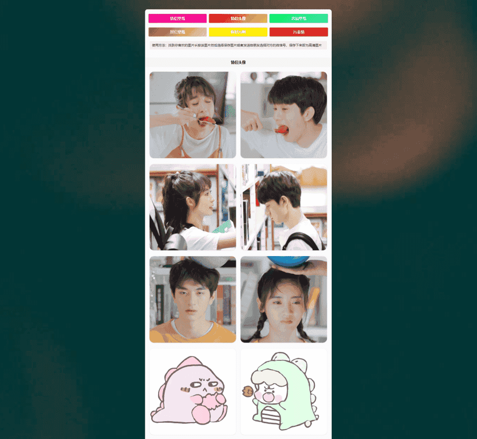 该主题是本人的一个头像壁纸站点的主题,这个站最初是女朋友要让和她用情侣头像和壁纸,跑到网上转了一圈都没找到一个专门的情侣头像壁纸站,只在知乎某个答案下找到一些情侣头像,而情侣壁纸就更难找了,找一对的找了很久没找着,奈何没办法只有自己做一个小站,收集了几千张头像和壁纸给自己用。