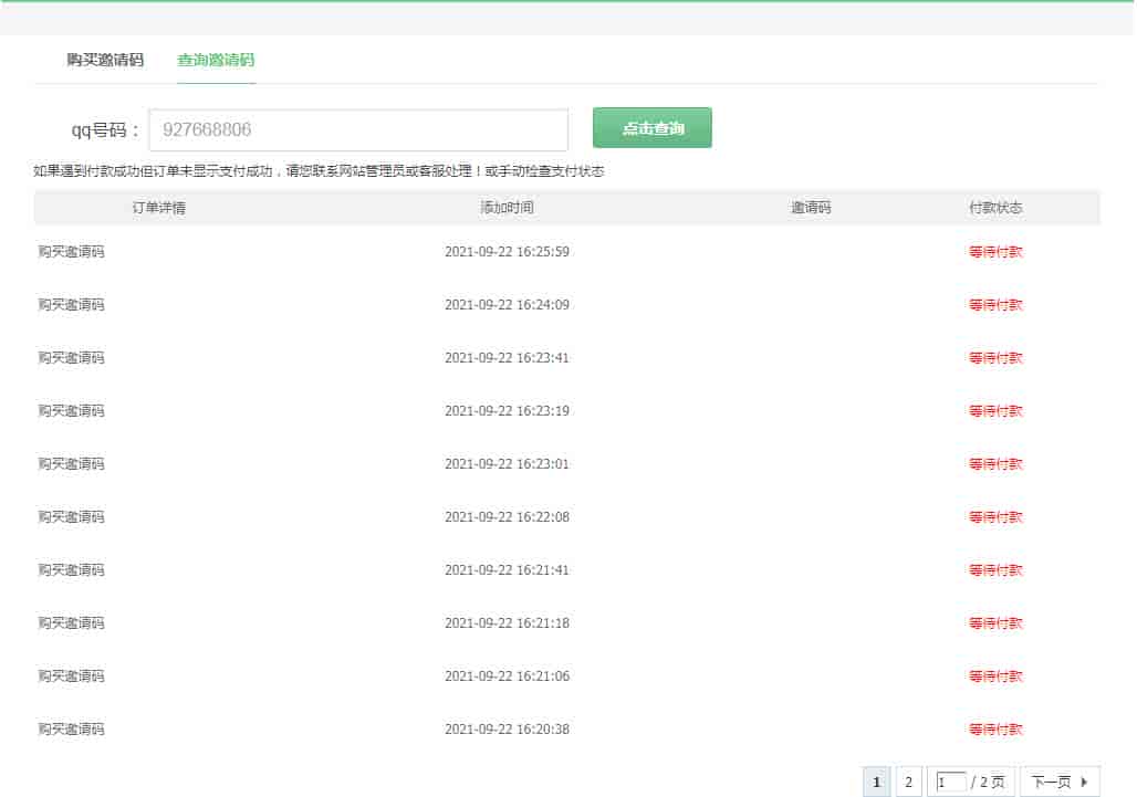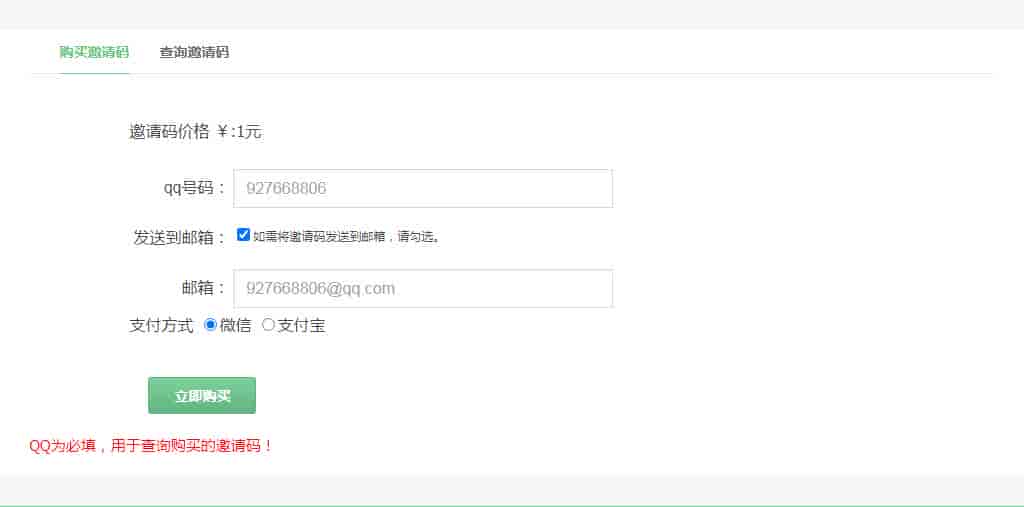 支持微信支付宝及时购买邀请码插件