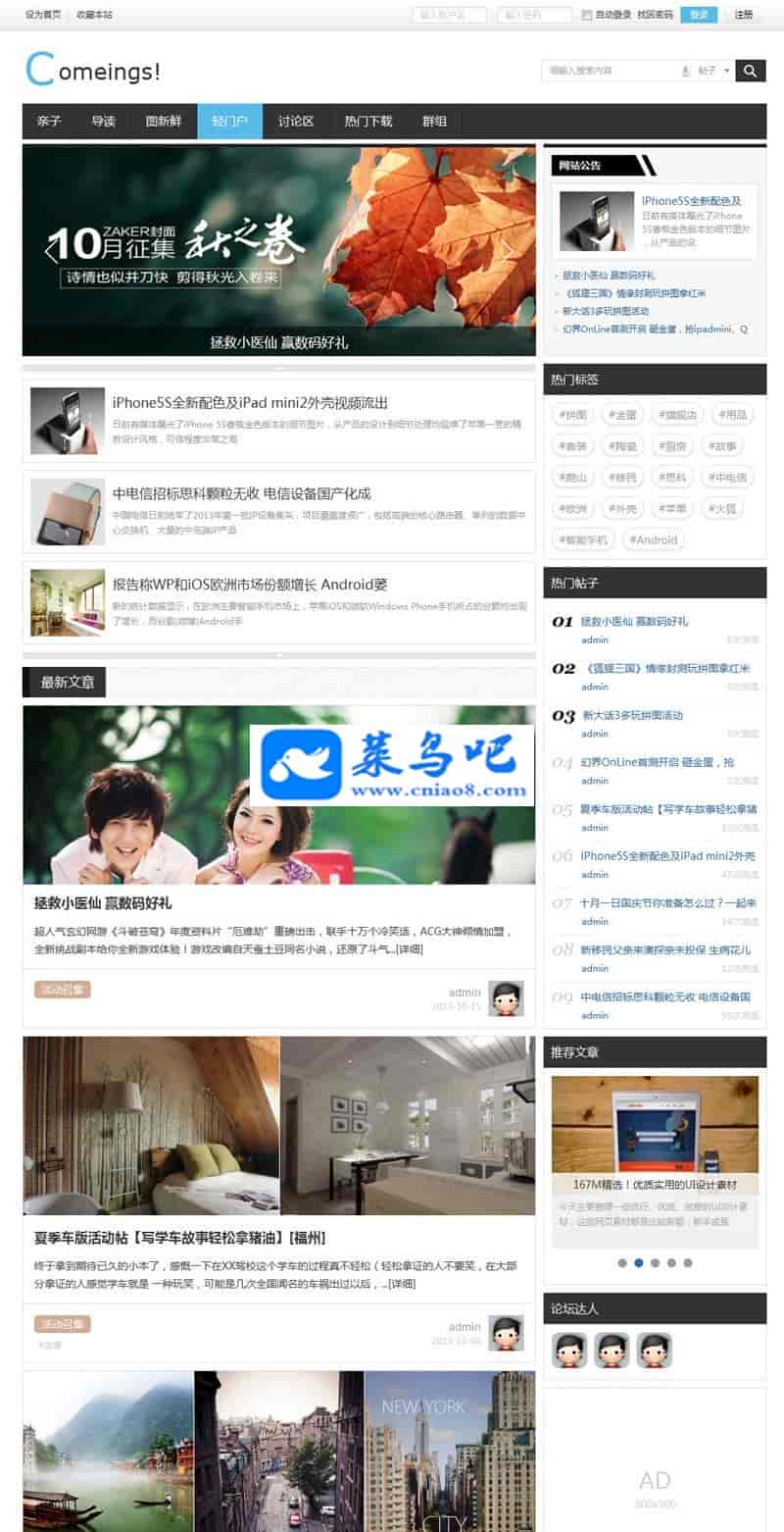 - 这是一个为阅读而生的插件,带给你的用户全新的门户体验,首页数据可以设置调用论坛或者资讯;