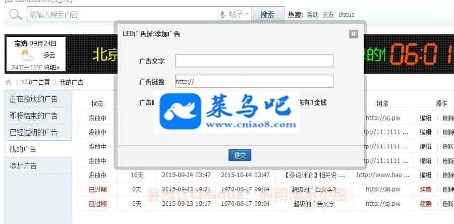 [discuz插件] 最新LED广告屏 3.0+用户自助购买LED广告组件|字体滚动速度流畅不卡顿等