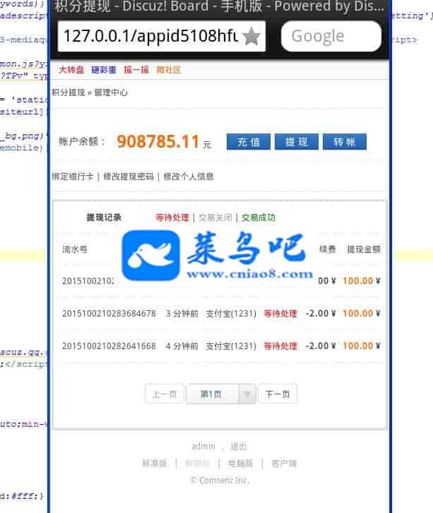 DZ插件 discuz积分提现银行余额宝刷单版