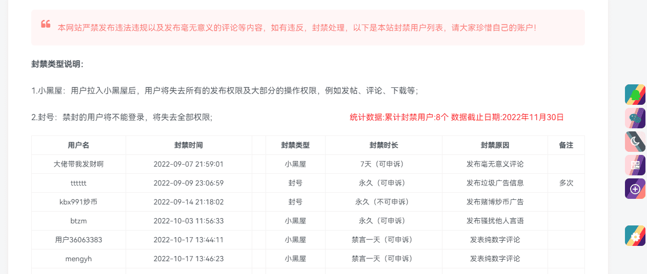 [wp插件] 子比主题小黑屋页面zibll封禁用户列表单页带小工具WordPress主题源码