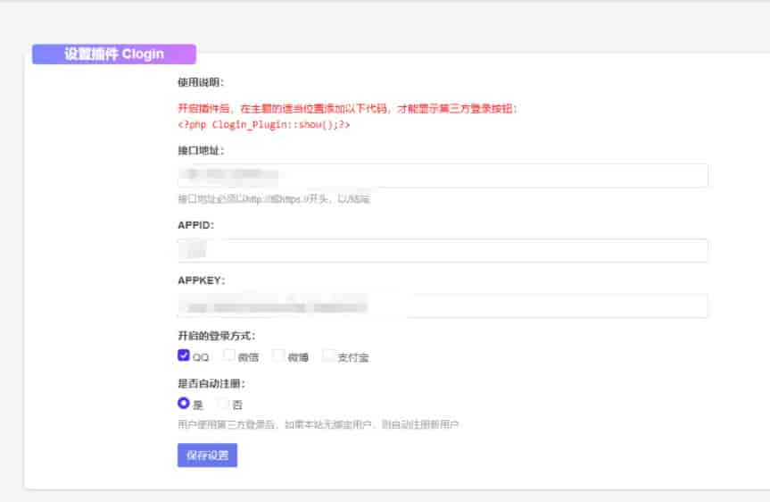 [其他插件] Typecho快捷登录插件快速登录聚合插件QQ微信微博支付宝API插件源码素颜Clogin