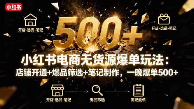 小红书电商无货源爆单玩法:店铺开通+爆品筛选+笔记制作,一晚爆单500+