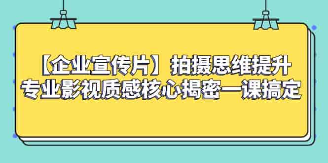 【企业宣传片】拍摄思维提升专业影视质感核心揭密一课搞定