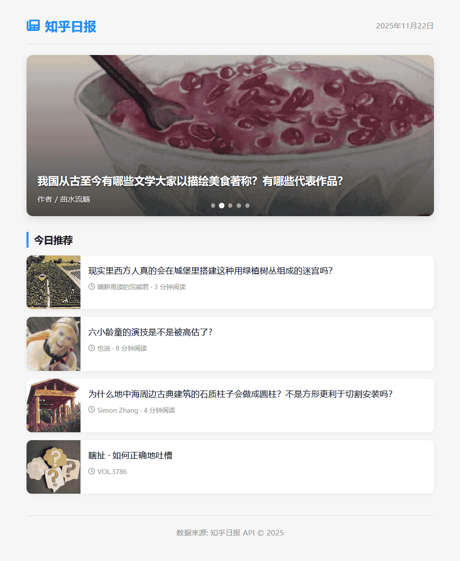 [免费源码] 免费下载单页知乎日报项目 HTML源码
