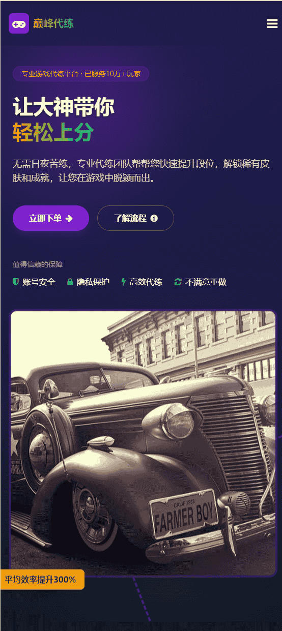 整体而言,这个精简版模板在 “轻量” 和 “实用” 之间取得平衡,既去掉了非必要的装饰性元素,又保留了代练业务所需的核心功能,特别适合需要快速上线、注重转化效果的中小代练团队使用。