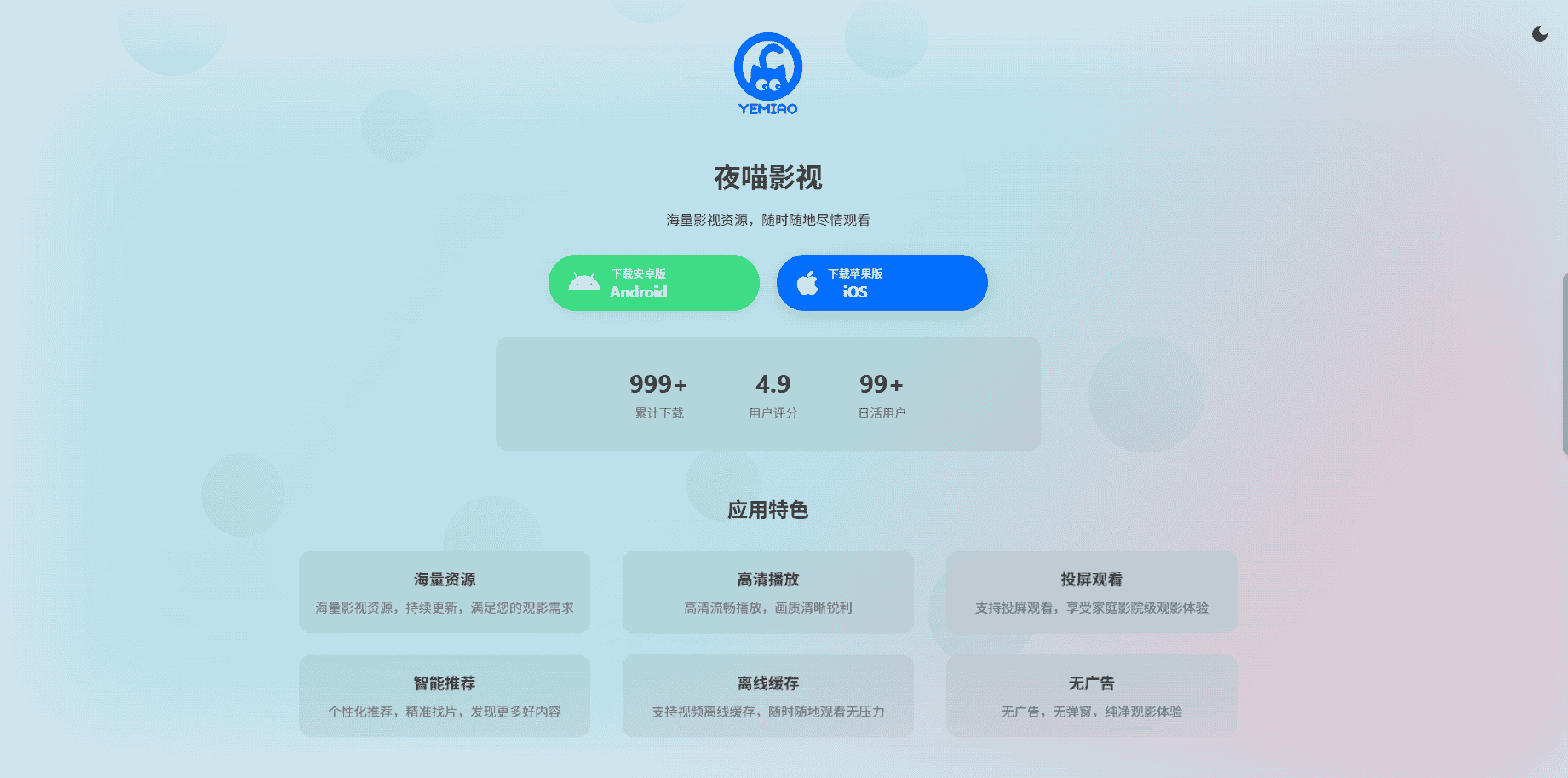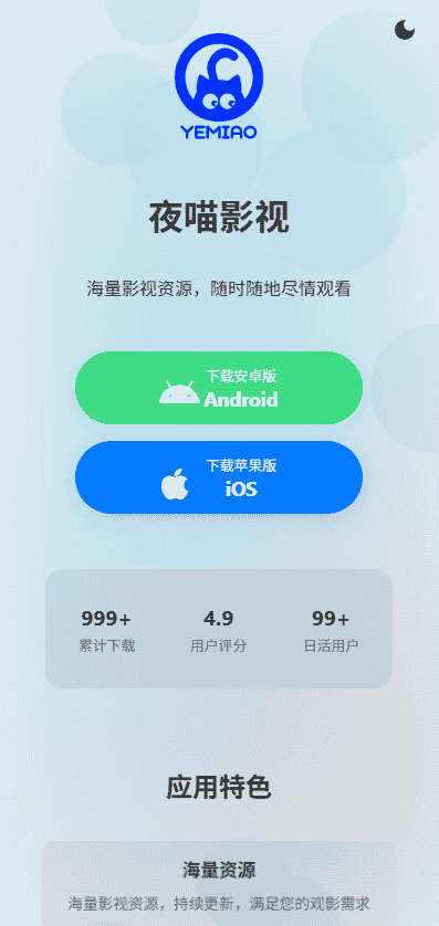 非常不错的一款APP软件下载介绍页源码,带有iOS和安卓下载入口,自适应手机、电脑端