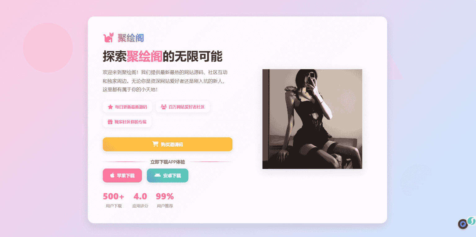 [免费源码] 聚绘阁app下载页源码 二次元样式