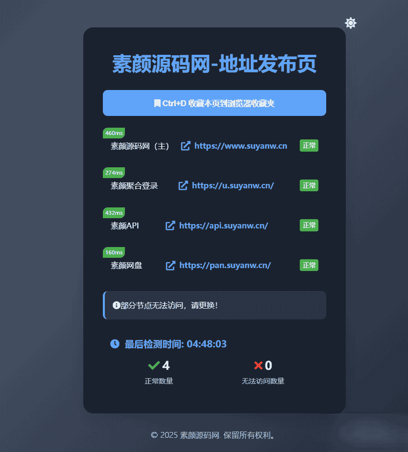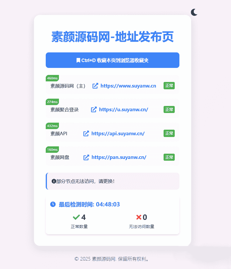 [免费源码] 素颜全新UI网址发布页源码_地址发布单页_带黑白模式