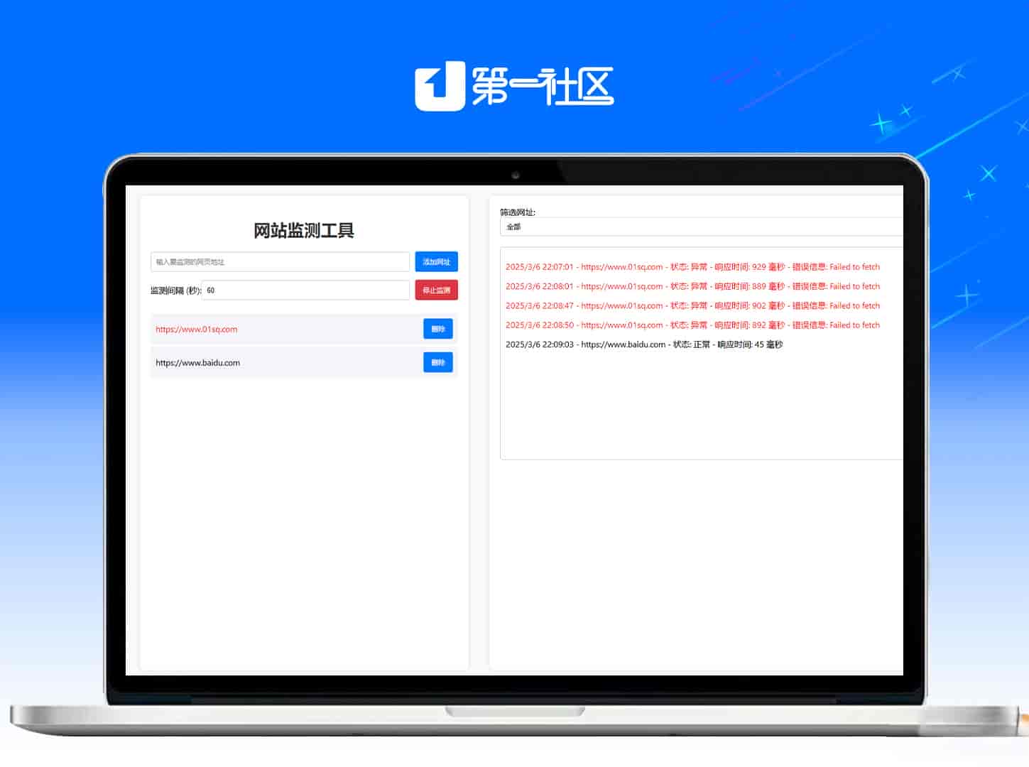日志记录:每次对网址进行检测后,会记录网址的状态(正常或异常)、响应时间、时间戳以及错误信息(若有)。日志记录会存储在 logs 数组中,当日志数量超过 1000 条时,会移除最早的日志记录。
