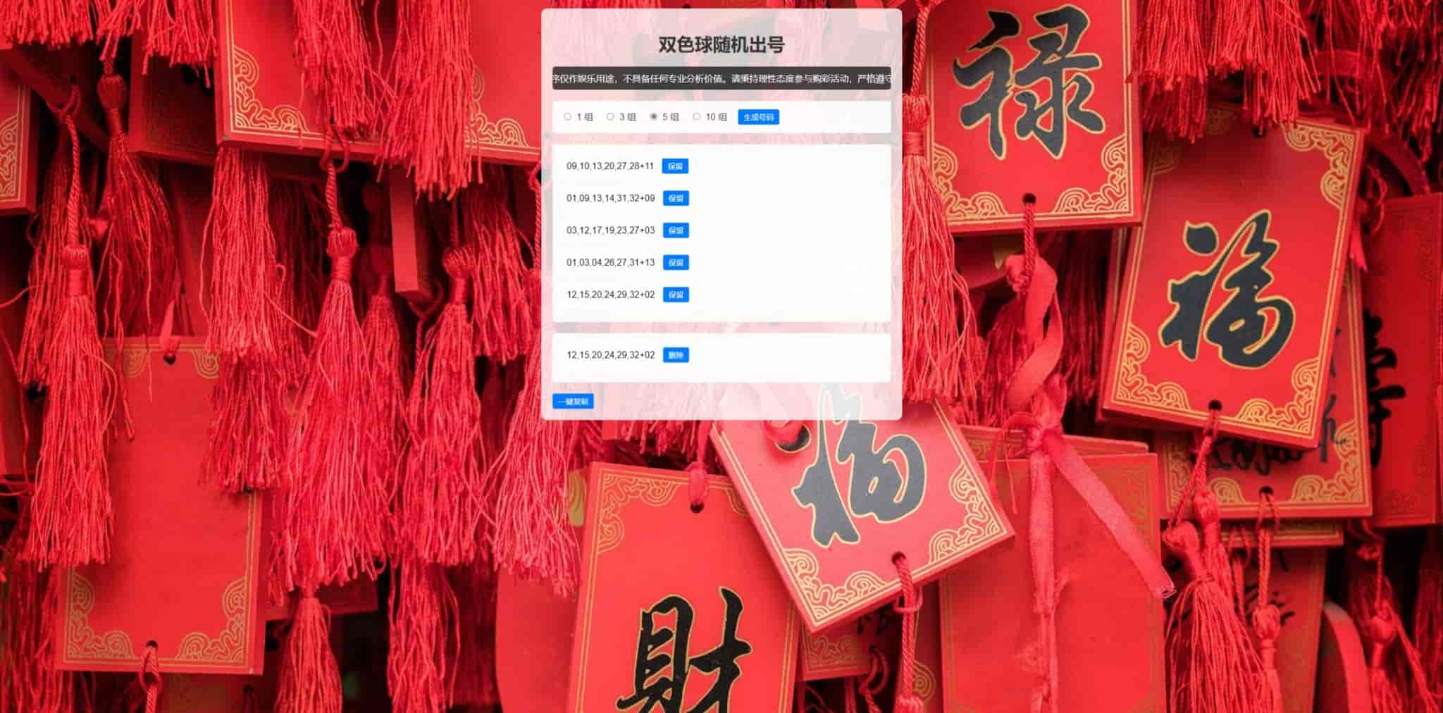 [免费源码] 单页HTML双色球随机选号工具源码