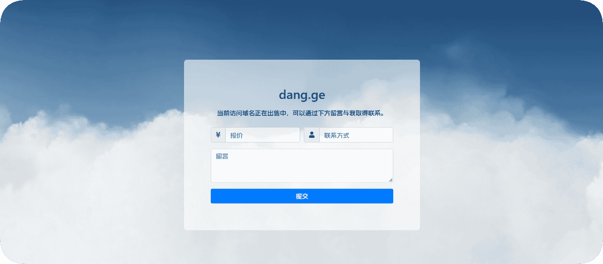 首先,我需要一个简单而美观的网页来展示域名的出售信息,并提供一个表单供用户填写他们的报价和联系方式。这个页面的实现主要在index.php中完成。 在index.php中,我使用了Bootstrap 4来快速构建响应式布局,并引入了Font Awesome图标库来美化表单输入框。页面的核心部分是一个表单,用户可以在这里输入他们的报价、联系方式以及留言信息。