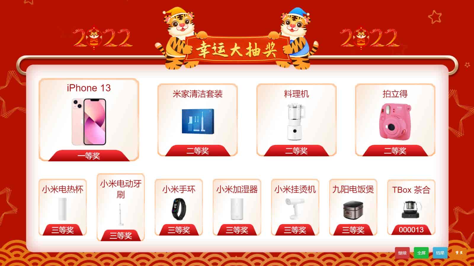 抽奖之后会动态更新中奖人员名单。