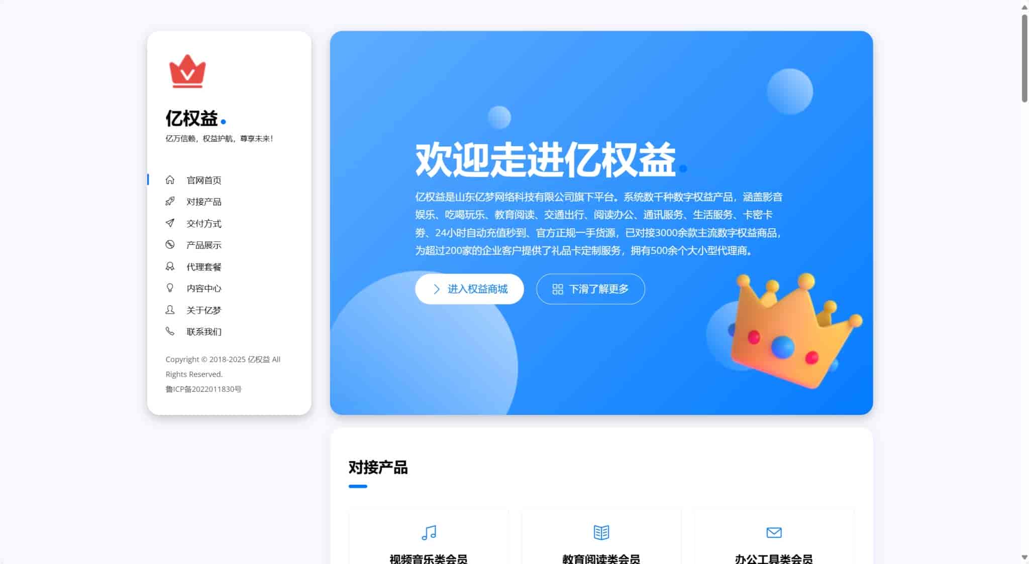 分享一款与亿权益同款的网站模板引导页面,界面超好看,支持手机端自适应!